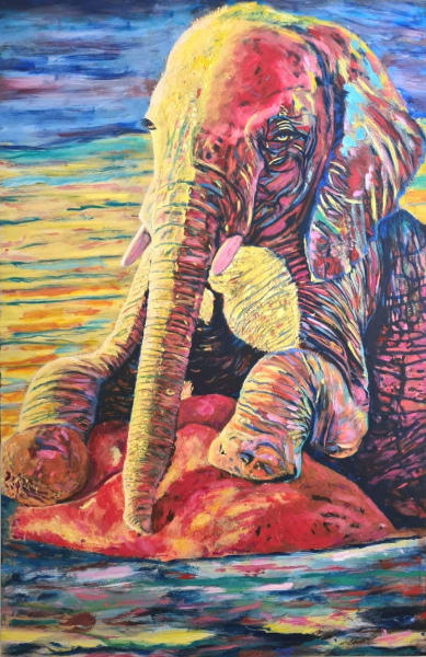 Elephants are truly majestic, wise creatures. This baby elephant characterises simple childhood pleasure, joy and playfulness. With this piece I experienced, fun, fun, fun!