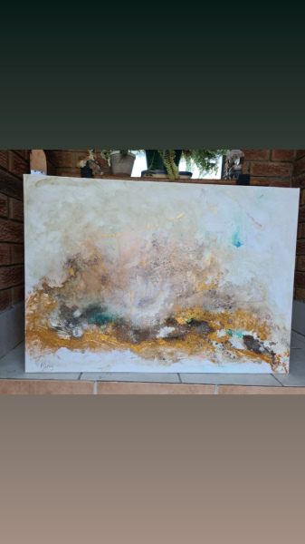 A new abstract technique I am experimenting with which starts off writing a message in charcoal (missing my soulmate) then using coffee as base for the painting. I got caught up in the experiment, soaking up the positive energy of trying something new!